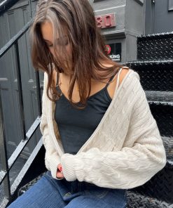 Brandy Melville Women’s Aleah Cotton Stripe Sweater | Ivory Navy Blue Stripes (do Not Enable) Ok