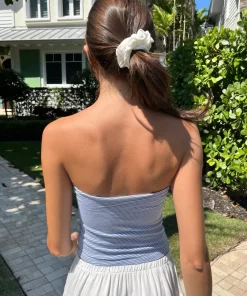 Fitted, cropped strapless white with faded navy stripes top. Fabrics: 96% cotton, 4% elastaneMeasurements: 12″ (31 cm) length, 13″ (33 cm) bust Made in: Italy