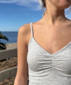 Spaghetti strap tank with cinched detailing on the bust.Fabrics: 96% cotton, 4% elastaneMeasurements: 21″ (53 cm) length, 16″ (41 cm) bust Made in: Italy