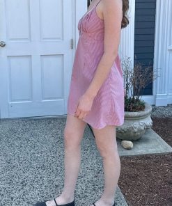 Spaghetti strap dress with three button down detailing, lace trim, and a seam under the bust. Fabrics: 100% cottonMeasurement: 36″ (91 cm) length, 14″ (36 cm) bust Made In: China