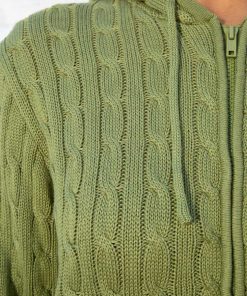 Regular fit, zip-up sweater in a cotton-blend, cable knit with a hood and ribbed trim.Fabrics: 45% cotton, 55% acrylicMeasurements: 24″ (61 cm) length, 22″(56 cm) bust Made in: China