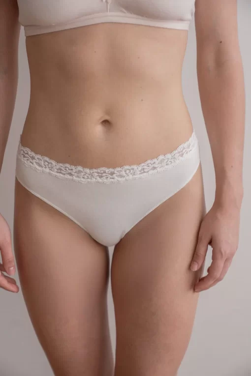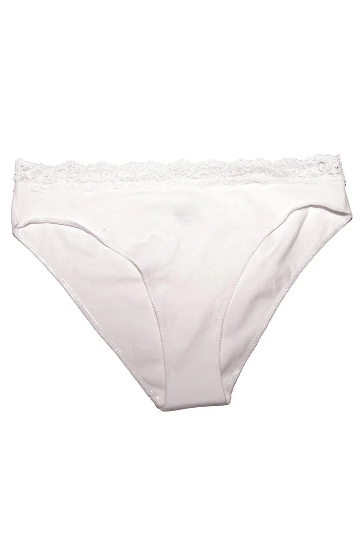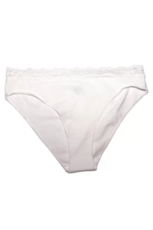 Soft cotton undies with an elastic lace waistband with lace detail. All intimates are final sale.Fabrics: 96% Cotton, 4% ElastanMeasurement: 9.5″ (24cm) rise, 28″ (71cm)waist (stretches)Made in: Europe