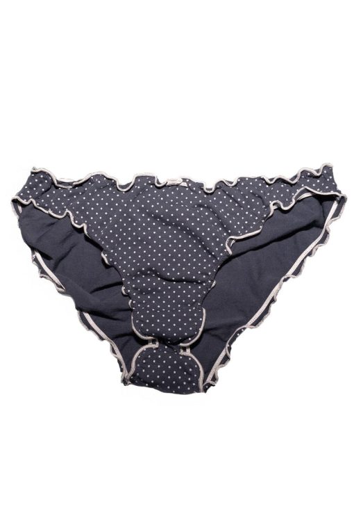 Soft, polka dots, cotton underwear with an elastic lace waistband, scalloped trim and a bow. All intimates are final sale.Fabrics: 96% Cotton, 4% ElastaneMeasurement: 9.5″ (24 cm) rise, 28″ (71 cm) waist (stretches)Made in: Europe