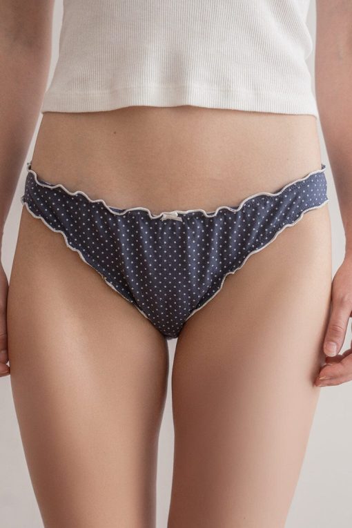 Brandy Melville Women’s Intimates & Pajamas Polka Dots Scallop Bow Underwear | Faded Navy Blue With White Polka Dots