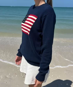 Be the first to review “Brandy Melville Women’s Nico American Flag Sweater | Navy Blue” Cancel reply