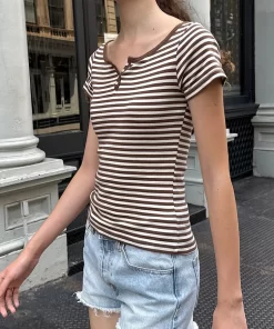Be the first to review “Brandy Melville Women’s Zelly Striped Top | Brown Ivory Stripes” Cancel reply